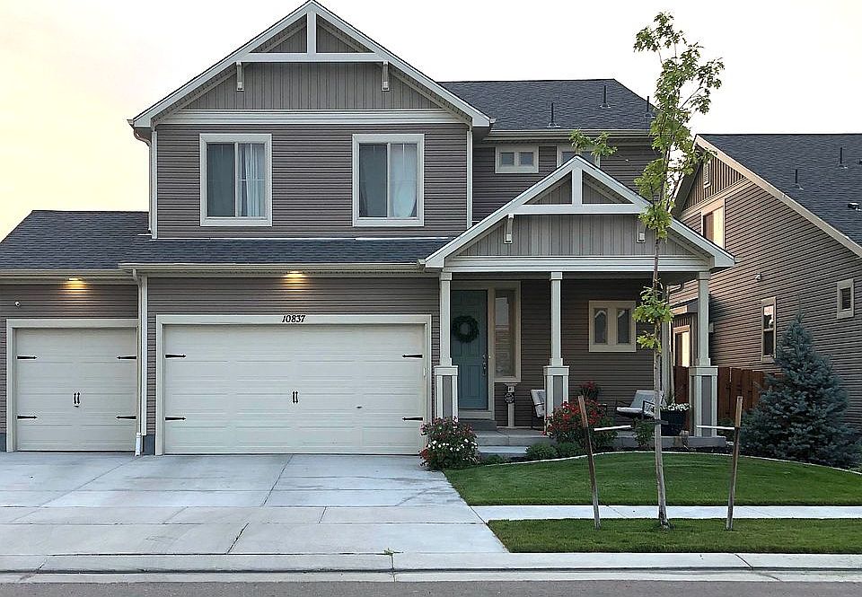 Welcome to your new home in the beautiful Turnberry neighborhood! This meticulously-maintained 2016 home is better than new, with 2856 total sq ft, including storage room and finished basement. On the main floor you find an open floor plan, complete with continuous hardwood floors, built-in stone fireplace, recessed lighting, dining area, powder room, and west-facing wall of windows that let in plenty of natural light and showcase unobstructed mountain views. The heart of the home is a gorgeous upgraded kitchen with extra cabinet space, granite counter-tops, double oven, roomy walk-in pantry, and large island with even more built-in cabinets. Upstairs the master suite includes oversized shower, granite counter-tops, upgraded his-and-hers sinks, walk-in closet, and two more mountain view windows. The large 2nd upstairs bedroom with walk-in closet could function as extra living space, a playroom, or an office. Down the hallway are the 3rd and 4th bedrooms as well as a full bathroom with an upgraded shower/bathtub. The basement was finished at the time of construction, which resulted in seamless matching of materials throughout the home. Tall basement windows invite sunlight into the family room / rec room and the 5th bedroom. The basement also includes another full bathroom with upgraded shower/bathtub and linen closet. The basement storage room has an included water softener and much space for shelving. The well-kept backyard is one of the bigger in the neighborhood, with giant wrap-around patio, ornamental pear tree, spruce tree, concrete edging around the lawn, vegetable and flower garden spaces, and custom irrigation system. No neighbors to the back make for a private atmosphere. Even in Colorado winters, the southeast-facing driveway enables the sun to melt snow. The 3-car garage gives you ample room for your vehicles, storage, and projects. Sit on the front porch to enjoy the nicely landscaped front yard with lawn, spruce tree, perennial flowers, and bushes.