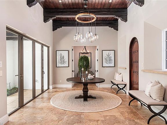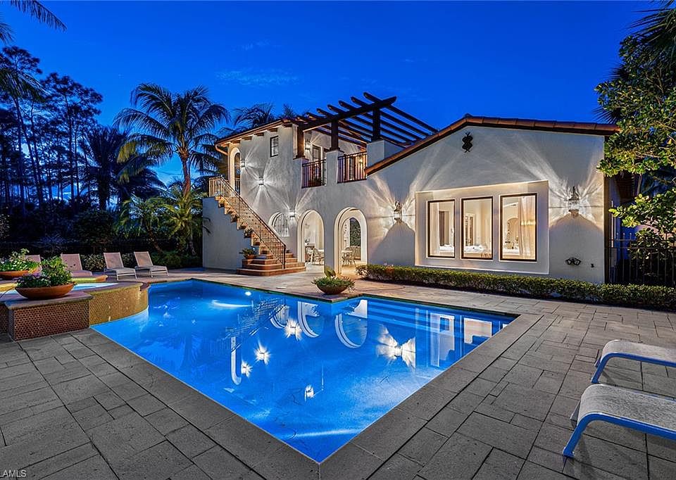 H.15864 - Breathtaking views of water & golf course combined with an outdoor lifestyle designed to perfection create a magical escape in this one-of-a-kind home. This home flawlessly integrates the indoor & outdoor spaces with pocketing sliders & expansive folding retractable doors. Enjoy a glass of wine by the outdoor fireplace or relax by the pool located in courtyards that seamlessly flow together through the covered outdoor living area. Retreat to the second-floor den featuring a private deck adorned with a fireplace & overlooking the home's stunning views. Designed with the charm of a home built over time, enter the front courtyard where a private cabana bedroom is located and includes a morning kitchen. As you enter the home, layered views offer a bright welcoming feel. The master wing features a morning kitchen, a footed tub, and a heat lamp at the shower entrance. The chef's kitchen is connected through the butler's pantry to the dining room featuring custom wine storage & opens up to the great room with views to the multiple courtyards. Details include custom TNG and beamed ceilings, quartz countertops, a lighting control system & so much more. Your Florida escape awaits.