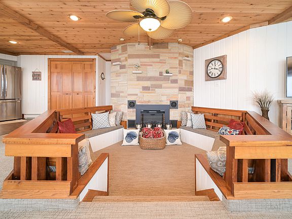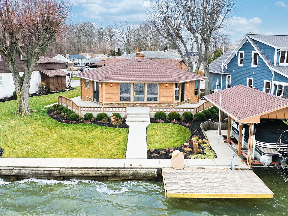 With one of the best views on the Lake, this unique octagonal shaped home with fabulous panoramic views of Indian Lake. Open concept, three bedroom, 1 bath home easily sleeps 10 people. A sunken living room with electric fireplace makes the great room extra cozy. The kitchen has Cambria Quartz countertops and all Stainless Steel appliances. This property faces the east for beautiful sunrise views and calm waters for easy docking. Outside features include concrete patio and walk, single covered dock with electric lift and new roof, and a new electric PWC lift that fits 2 wave runners. This home has a two car attached garage for storing all of your Lake toys. You won't want to miss this one!!