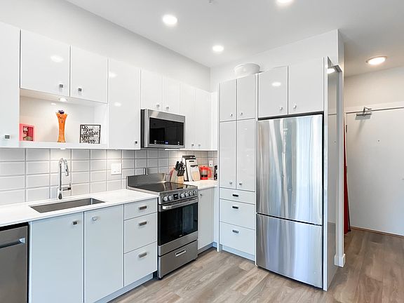 Welcome to the Maverick, 1 year NEW with 2-5-10 warranty! The 1 bedroom + den with 575 sf features, 9' ceiling, sound proofing between floors and homes, wide plank laminate flooring, kitchen with S/S appliances, quality cabinetry and quartz countertops. A 10,000 sf epic amenities include full gym, common courtyard, fireside lounge & community kitchen to entertain large parties. Short walk to Gateway Station, Surrey Central Mall & SFU. Perfect for investors, currently tenanted until Dec 2022 for 1700/mo (utilities separate)! 1 underground parking and 1 storage Locker. Open House Sunday March 13th, schedule your appointment now!