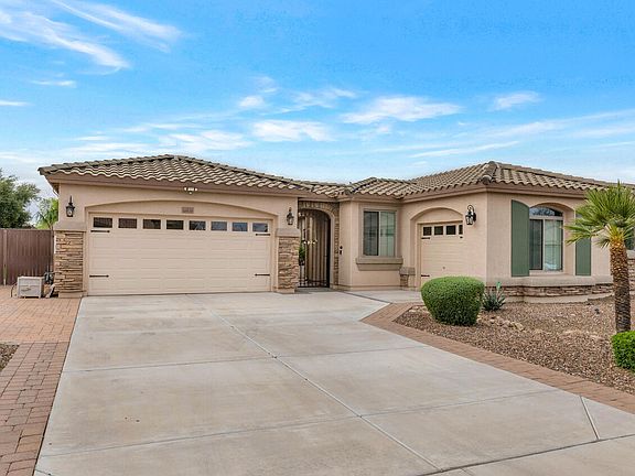 You will APPRECIATE this IMMACULATE and METICULOUSLY CARED FOR HOME*Seller made MAGNIFICANT UPDATES such as WOOD-LIKE TILE FLOORING T/O, NEW BASEBOARDS, GRANITE, interior PAINT, BACKSPLASH, ROLL-OUT SHELVES at KITCHEN, GAS STOVE, TWO NEWER A/C UNITS (2023), exterior PAINT, sun screens, and GORGEOUS IRON DOOR*SHUTTERS*Seller added CABINETS and SLEEK EPOXY FLOORS to your 3-CAR GARAGE*Your FRONT COURTYARD has a PRIVACY GATE and you have EXTENDED PAVERS and RV GATE at side yard*WAIT UNTIL YOU SEE THIS LOVELY BACK YARD with ARTIFICIAL TURF, paver walk way and the FANTASTIC EXTENDED PATIO COVER with LEVELOR SHADES, BBQ KITCHEN ISLAND (never used), and STAINED CONCRETE**You will LOVE the ENERGY SAVINGS of OWNED SOLAR*COME BY and see why YOU WILL WANT to CALL THIS PLACE your ''HOME''