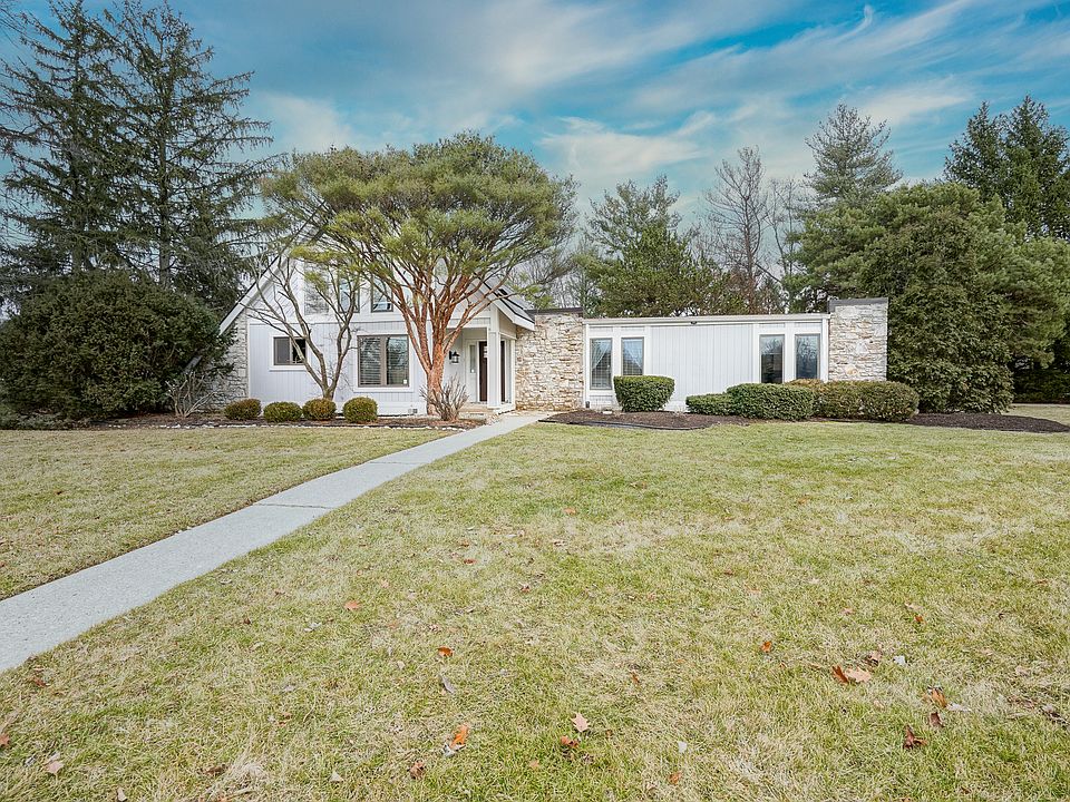 Stunning Crooked Stick home with an expansive lot and a backyard oasis boasting a gorgeous Gunite pool and firepit perfect for entertaining. The Kitchen features Stainless Steel appliances, Quartz countertops, and an open layout ideal for gatherings. Abundant natural light fills the home through a wall of windows, offering breathtaking views. All bedrooms are on the Main Level, providing separation from the entertainment areas. The impressive Great Room has a modern fireplace and loft access, ideal for additional entertainment or office space. The Primary Suite includes two separate walk-in closets with built-ins and a distinctive ensuite bath with an open shower. Spacious 2-car garage completes the package. A Carmel dream!