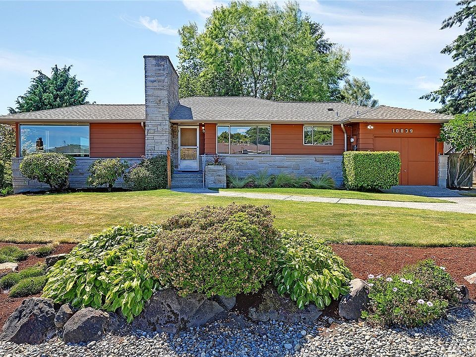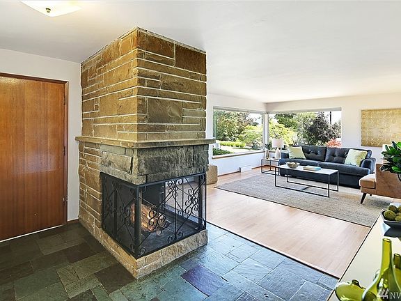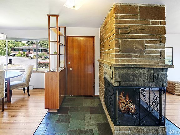 Lovingly cared for by the same family for over 45 years, this mid-century gem with Sound view is ready for new owners! Slate entry & 3-sided fireplace opens to light-filled living & dining rooms.The eat-in kitchen with mid-century vibe awaits your modern design.3 Bedrooms on the main, including master bedroom with 3/4 bath.Daylight basement with 4th bedroom, 3/4 bath, family room that opens to rear yard & patio, laundry, shop & storage.New roof, int. paint, carpet & refin hdwd flrs.ADU potential