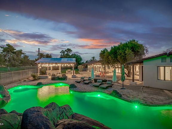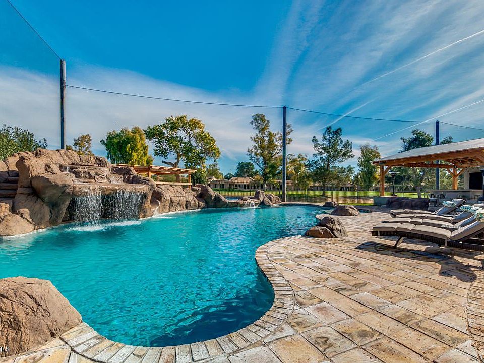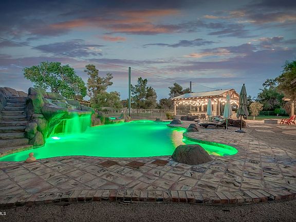 BREATHTAKING single level home overlooking Star Fire Golf Course. Spacious 6 bedrooms plus 10-14 person bunk area, 7 baths with STUNNING backyard. One of a kind estate located on a huge lot, with private gated entry. Backyard has an INCREDIBLE 625 sqft cantina, with a bar, sink, built-in bbq, beer fridge, stereo, and TV. AMAZING oversized pool boasts waterfall, slide, grotto, & huge jacuzzi. Backyard features half-size basketball court and an array of citrus trees. The enormous family room opens up to the pool/cantina area with plenty of space for interior entertaining. The open concept kitchen includes top of the line Thermador appliances including a 6-burner gas range w/ griddle, 2 ovens. Buyer beware, the decor of barn wood and metal is simply CAPTIVATING.