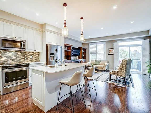 Entertainers Delight! End-Unit Town Home In Trendy Lakeshore Village, Western Exposure To Beautiful Greenbelt/Ravine & Fabulous Sunsets From Big Balcony (W/Awning) Or Lower Deck. The Elmwood Is 2nd Largest Unit In Complex, The 3+1 Bed, 4 Bath Has 2670 Sf Of Living Space. Upgraded: View, Balcony, California Shutters, Kit Pantry Cabinet, Many Pot Lights, 2nd Floor Laundry, Flexible Furnace W/Lower & Upper Zone, Nat Gas Bbq Line.