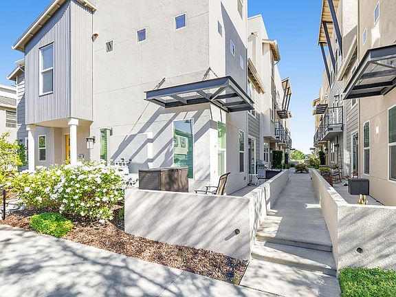Stylish and energy-efficient townhome in Heirloom at The Cannery. Built in 2015, this 1,404 sq. ft. home offers modern living across three thoughtfully designed levels. The entry level includes a comfortable bedroom and full bath, perfect for guests or a home office. Upstairs on the main level, you'll find an open-concept living area with high ceilings that create an airy, expansive feel. The modern kitchen features slab countertops, a large pantry, stainless steel appliances, a gas range, and a large sink. Adjacent to the kitchen and dining area is a spacious balcony deck, ideal for relaxing or entertaining. This level also includes a laundry closet with a stackable washer/dryer and a convenient half bath. The top floor is dedicated to the private primary suite, offering a generous walk-in closet and a beautifully appointed bath with dual sinks. Energy-efficient features include owned solar, a tankless water heater, and low-maintenance living with the HOA covering exterior and roof maintenance. Residents enjoy access to The Cannery's exceptional amenities, including the pool, Ranch House, clubhouse, and loop trail. Conveniently located near public transportation, Nugget Market, downtown Davis, and top-rated schools.
