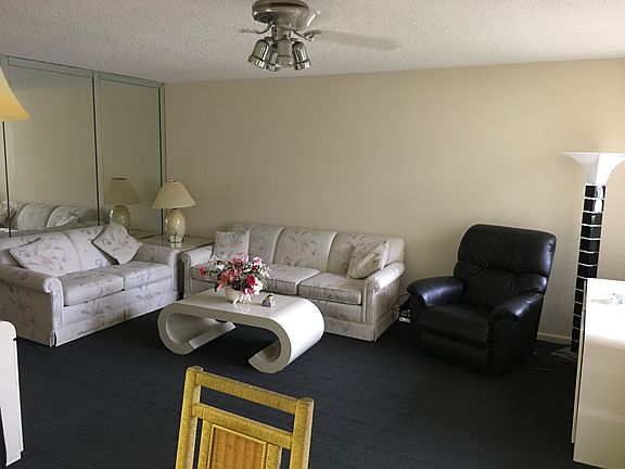 Century Village Boca Raton. Furnished two bedroom, 1 1/2 bath first floor apartment in best association, Cornwall. This is in the E building. Enclosed porch offers the option of a third bedroom or office/family room. The windows on the porch can be opened to let the fresh air in, there is also a safe secure door on the porch. Since pictures were taken, I have replaced the backsplash in the kitchen with a beautiful glass tile and removed the balusters on the counter. Stove and fridge are fairly new. Parking space is conveniently located right outside the door which is a big plus when grocery shopping. Cable and high speed internet are provided at no charge. Pool just steps away. Beautiful Clubhouse, Gym and Theater. Walking distance to all including House of Worship. This is being offered furnished as a turnkey or unfurnished at the same price. Being sold by owner so no broker fees. Please contact me at 561-247-1081