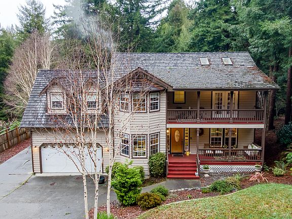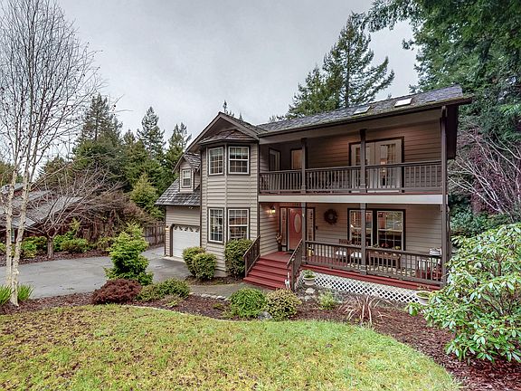 Beautiful custom-built home nestled in the scenic redwoods in a desirable neighborhood, near HSU and hiking trails. This 3 bedroom home has an additional rec room upstairs that can be used as 4th bedroom. Additional room downstairs for home office. Upgraded hardwood floors and newer carpet. Large kitchen and living room area, Jacuzzi tub and heated floors in the master bathroom. Large attached finished double garage w/additional single garage. Giant multi-tiered private deck with views of the redwoods.