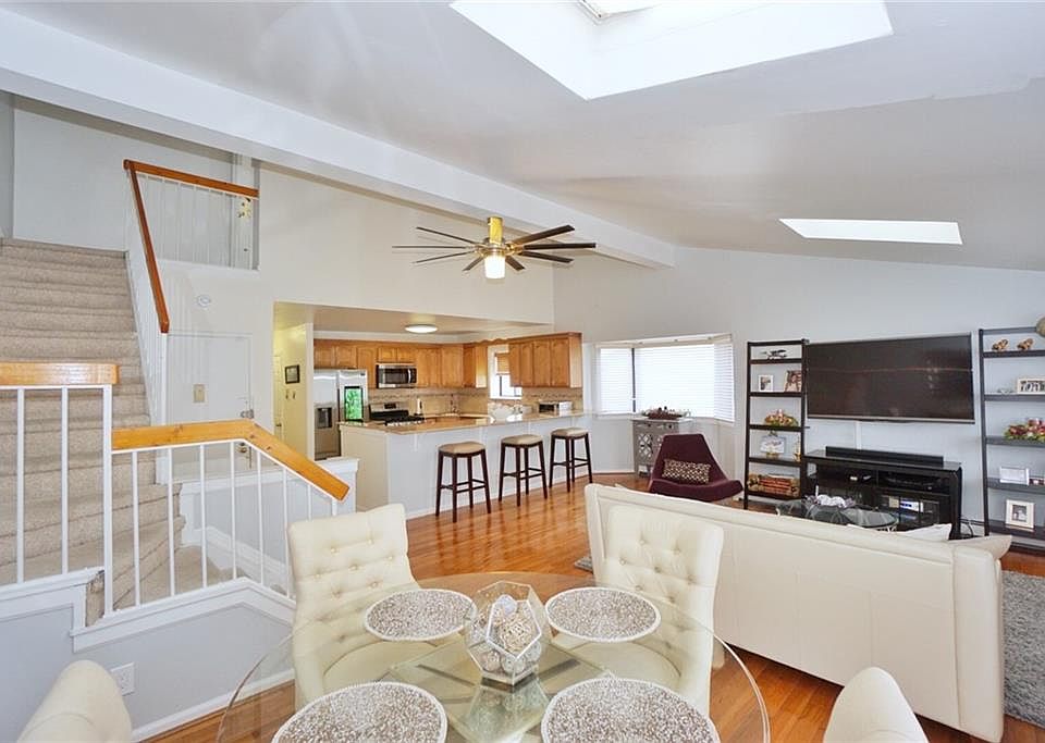 NEW to market! Stunning spacious 3 bedroom, 3 bathroom semi-attached condominium with attached garage + private driveway in a highly sought out Georgetown gated community! This magnificent top floor, partial duplex, corner unit boasts cathedral height ceilings throughout with 2 skylights and 2 terraces which offer tons of natural sunlight. The beautiful open concept layout offers a wonderful flow from the huge gourmet kitchen to the living room and separate dining area. The windowed kitchen is beautifully outfitted with new top of the line Samsung appliances which include an impressive Smart Hub refrigerator, wine cooler and dishwasher. The kitchen and hallway have been newly updated with glistening polished porcelain tiles. This unit offers 3 large bedrooms, 2 of which are en-suites with beautifully upgraded 3/4 bathrooms. Each of the 3 bedrooms provide large closets with ample room for storage. There is also a 3rd full bathroom on the first floor and as an added bonus, this unit also includes a large LG washer/dryer set nicely tucked away in its own closet. Additional amenities include access to a beautifully manicured courtyard, access to tennis courts and club house for private events. The low maintenance fee covers snow removal, garbage removal and water usage. Very quiet neighborhood within walking distance to supermarkets, banks, pharmacies, urgent care and fantastic restaurants. Tons of transportation options available including local bus stops and the Express Bus to Manhattan. This unit is turnkey ready, no need to look any further!