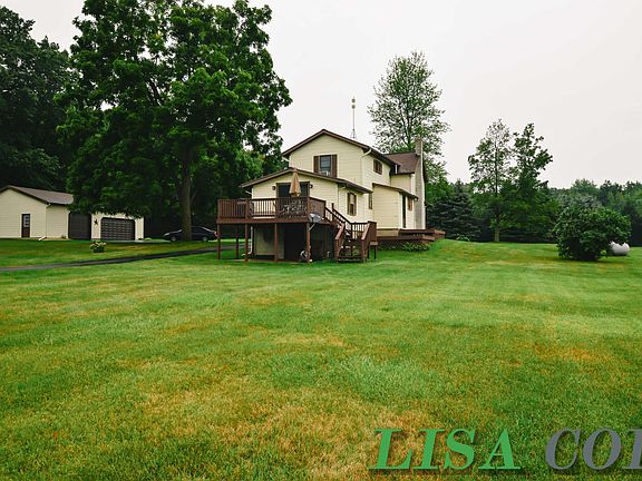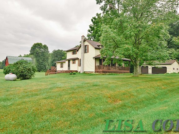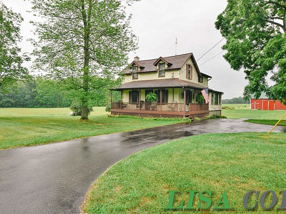 Beautifully renovated farm house on 7 acres. 40x30 detached garage. Large hip roof barn. This house has so much character! The back deck and covered front porch are perfect for relaxing and enjoying the beautiful views and nature. Lots of storage room in the waterproofed basement. This home is very clean and well maintained! All 3 bedrooms are upstairs. The master has cathedral ceiling and large closets. There is a full bath on the 2nd floor.The main floor has a spacious living room with staircase to the 2nd floor, formal dining room, full bath,kitchen with laundry area, family room with cathedral ceiling and sliders that lead out to a deck facing south. The old barn is amazing and filled with character and charm! There is also a huge garage and the driveway is paved. Tour this one soon!