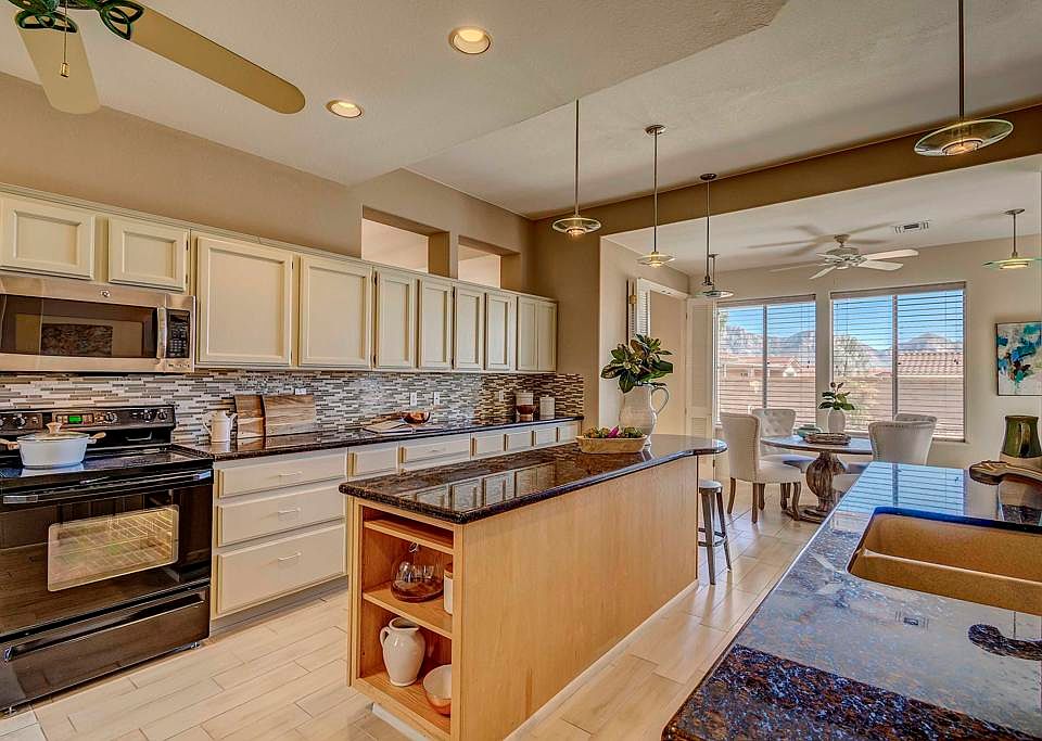 Sun City Oro Valley - 3BR, 3BA Crescent model expanded to 2,512sf with updated kitchen, baths & flooring & pool. Lovely courtyard entry. Kitchen has granite counters, glass tile backsplash, large island, breakfast area open to Formal Living/Dining area. Enlarged Master suite has sitting area, cedar-lined closet & additional walk-in closet. Family room has raised gas fireplace & wet bar. Office area & additional storage. Newly install carpet in BR's. Spacious low-care east-facing backyard has covered patio with extended Pergola & pool. Solar City a PV (photovoltaic) system installed on roof significantly reducing monthly payment to Tucson Electric Power (TEP), the electrical utility. New Exterior Paint May 2018. Golf, tennis, Rec center, library, pool, fitness center & mor
