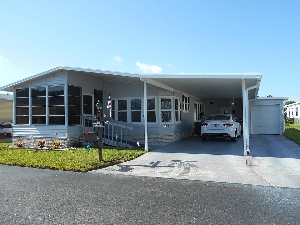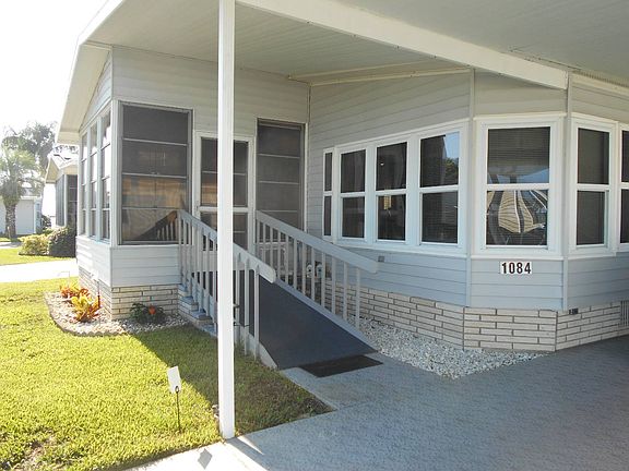 MOVE IN READY! This two bedroom, two bath, Homestead manufactured home is located in the ever popular 55+ Swiss Golf & Tennis and Hidden Golf Club CRF communities of Winter Haven, FL. There are quite a few upgrades in this home including new windows, roof, air conditioner, and new flooring in the kitchen, dining room and hallway. The neutral carpeting in the living room and both bedrooms allows your imagination to run wild with any color décor you choose. Both bathrooms have been updated with tile flooring and high-rise toilets. The master on-suite has double sinks with lovely stained-glass windows and a private area for the toilet and shower. No matter how large your bedroom ensemble is, the master bedroom is large enough to accommodate it. Each room is spacious and well decorated with furniture that will be included in the sale of this home. Swiss Golf and Tennis is a very active 55+ Community, so being located on a quiet street allows extra privacy. A spacious driveway leaves room for patio furniture so you can sit outside and enjoy the beautiful mornings or, if you prefer, you can always enjoy your morning coffee in the Florida room where beautiful French doors lead you there right off the living room. Outside there is a storage large enough to hold the washer and dryer as well as other items you cannot live without, but do not need inside the home. Also, there is a golf cart garage which means your golf cart will not be sitting out in the weather and it provides a great place to store it while you're out of town. This home is being sold furnished and the square footage is over 1,400 square feet. It is well priced and ready for just the right person to call it home. So call me, and let me help you start on the path to a new exciting way of living in your retirement! Address is 1084 Eagle, Winter Haven, FL 33881. The current monthly lot rent is $471.22. Contact Mary Lou Titus with Sun Resales, Inc