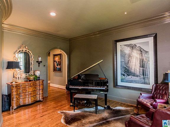 This 9000+ sq ft home is designer updated w/6 bedrooms,4 full baths & 2 half baths.It sits prominently on a golf course & cul de sac lot.The home's Georgian architectural style features interior & exterior columns,triple crown molding,keystone arched bookcases & doorways,a hand painted custom insert in the hardwood floor & oval windows rather unique in Hoover.Panoramic golf course views of the 10th hole,driving range & the Greystone Golf & Country Club are visible from the windows on the back.The Gourmet Kitchen has custom cabinets,soft close drawers,granite tops & high quality stainless steel appliances.The Wine & Cheese Bar (1 of 3) has a subzero fridge,2 refrigerated drawers,subzero ice maker & mini sink.The Master Suite has travertine flooring,a sitting rm,shower w/double heads & a dressing closet w/granite top island & 5 locking drawers.Upstairs has 5 bedrooms/2 baths & bonus rm.Basement has MAN AND LADY CAVES,IN-Law suite & safe rm.Please click document tab for more remarks.