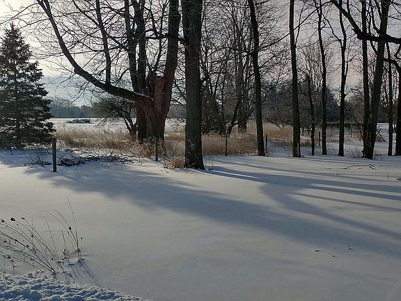 This charming farmhouse sits on over 2 acres of country paradise with many mature fruit trees and grape arbor. The land behind this property has been deeded to the Kiwanis club in perpetuity and is only permitted to be used for farming and charitable endeavors. Rear of property has been segmented for pasture. Detached garage has animal pen built into one stall, but has ample work space for any variety of handyman. The home itself boasts two spacious living rooms, first floor master suite, and partially finished basement. Brick fire pit installed in back yard 2 years ago.