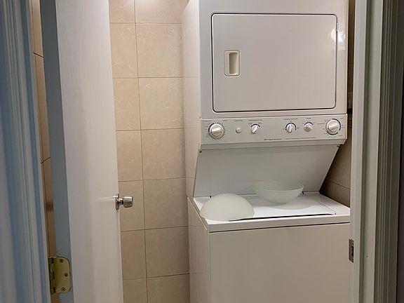 Spacious 1 bedroom apartment with a washer and dryer in the apartment! Plenty of street parking. Eat in kitchen. Tenant responsible for gas and electric.