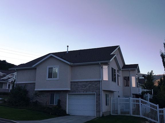 After a long day, retreat to your home in this highly sought after East Bountiful neighborhood with your choice of gorgeous parks, extensive walking trails and a golf course all within miles of your home. Enjoy the view and sunset from your deck where you are greeted by blackberry bushes, a small garden, and lush green trees and no worries! The front and backyard lawn care and snow removal is included in the low HOA fee. BBQ conveniently with a natural gas line. Once inside you'll feel right at home with vaulted ceilings and a natural gas fire place for cold winter days. Solid surface counter tops and knotty alder cabinets. Private In-Law suite with a designated area for future kitchenette and walkout basement entrance as well as 2 garage entrances. 2 car garage plus addition 3rd car garage with extended bay, perfect for your boat, truck or toys. You will love the schools and 20 minute commute to the airport or downtown SLC. (Water softer not hooked up. Sq footage figures are provided as a courtesy estimate from county records. Buyer to verify all info.)