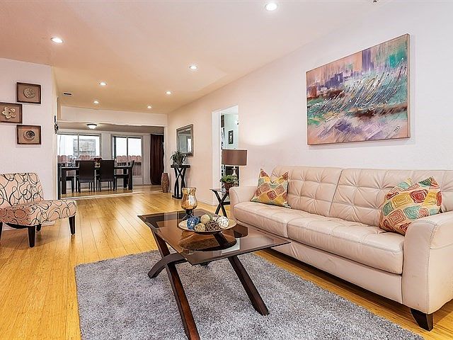 Family size Ranch-style home located in desirable Schafer Park neighborhood of Hayward. Walking distance to school and minutes from major shopping areas, bridges, and freeways. This naturally bright, North-facing home offers 3 spacious bedrooms, gleaming bamboo hardwood floors, and open kitchen with granite counters, full back splash, updated cabinets and modern appliances. Canned lighting, dual pane windows, and sliding glass door leads to a large private yard with covered patio, ample storage, and mature fruit trees.