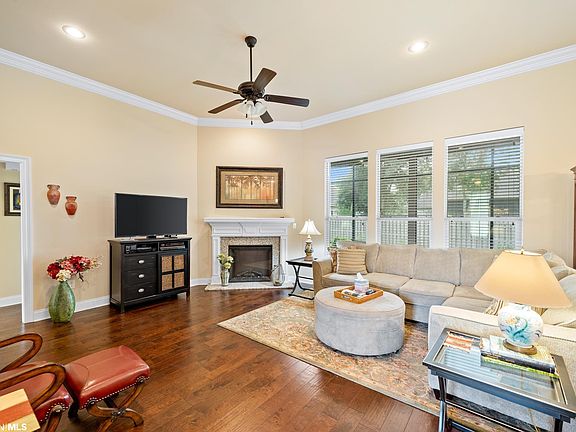 Beautiful brick home in Pebble Creek! Pebble Creek is a Foley community minutes from the white sand beaches, the popular Tanger Outlet Mall, and a great selection of restaurants. This location allows you to quickly get to anywhere in town. This home offers a great layout, as well as upgrades. High ceilings, crown molding, and granite countertops throughout to name a few. The kitchen is equipped with stainless appliances to include a new dishwasher, a pantry, breakfast area with access to the back patio, and a step-up bar for additional seating. The spacious living room features a gas fireplace and beautiful hardwood floors. This split floor plan allows privacy for the master suite as it is on its own side of the home. The master bath offers double vanities, a garden soaking tub, separate shower, and a large walk-in closet. One aspect of this home that you will appreciate is the convenience of the pocket office and mud room with boot bench! If you’re looking for the best place to relax after a busy day, step out onto the screened in back patio. The backyard is fully fenced so it’s private, and there is a double gate on the east side of the property. Other upgrades include gutters and a side entry double car garage.
