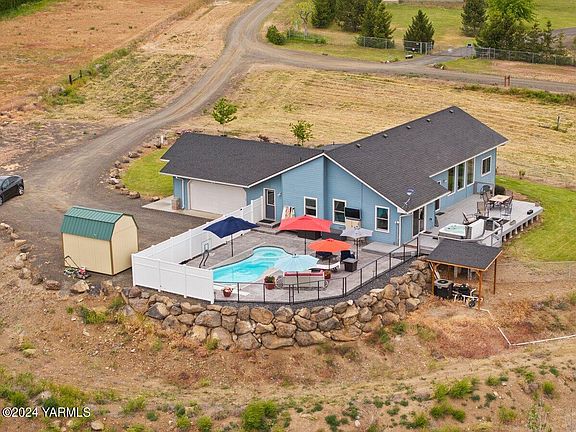 Welcome to this enchanting 3-bedroom, 2-bathroom home, nestled within the scenic highlands of Cowiche, Washington. Spanning nearly 1700 sqft on a generous 3-acre lot, this single-family residence combines modern comfort with serene living. The heart of the home features an open concept layout where natural light illuminates the space through newly installed triple-pane windows. A chef's delight, the kitchen is adorned with sleek granite countertops and ample storage, perfect for culinary explorations. The expansive living area, coupled with a luxurious master suite boasting a walk-in closet and dual vanity bathroom, ensures a tranquil retreat at the end of each day.This home is a haven of unique features and recent upgrades that set it apart. A newly installed pool and a cozy jacuzzi offer a private oasis with stunning views of the vibrant highland community. The expansive patio deck is an entertainer's dream, ideal for summer barbecues and outdoor gatherings. Additionally, the property includes a handy storage shed and abundant parking space, complementing its versatile outdoor living offerings.The exterior charms with its fully fenced grounds, ensuring privacy and security amidst picturesque surroundings. The property's location is both peaceful and convenient, within walking distance to the local elementary school and just a 20-minute drive to Yakima. Immerse yourself in this beautiful setting with ample space for relaxation and enjoyment. Buyer to verify all information to their satisfaction.