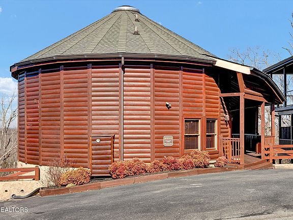 GREAT RENTAL INCOME! Mountain Splendor in the round at Declan's View. Don't pass up on this most unique cabin that can sleep up to six people. Features a full kitchen with breakfast bar, open and spacious living room and cozy fireplace. Private master bedroom suite complete with a whirlpool tub and fireplace to cozy up in front of. From the living room, walk out to the open and airy porch and enjoy your moring coffee, or soak in the semi private hot tub in the evening. The loft area has a private bathroom as well and can be used for extra sleeping area, and recreation room. Stacked washer/dryer so no need to leave to do laundry! Furnished and ready to go! Grand View Resort is just a few minutes to the Parkway in Pigeon Forge with all of its activities, Gatlinburg and of course The Great Smoky Mountain National Park.