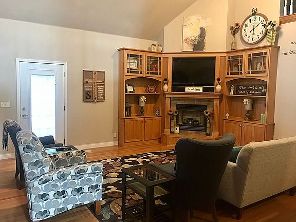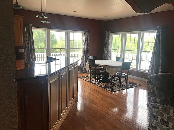 Beautiful family home with plenty of room to entertain. 4 bedrooms, 3.5 baths. Several newer updates including granite countertops and geothermal system making heating/cooling this fabulous home affordable. Beautiful open floor plan with vaulted ceiling in great room and custom built cabinets. Laundry on the main floor. It has a walk out basement with a patio and hot tub. Main floor master bedroom includes new carpet and Elfa closet shelving system. With just under 1 acre of land including Wrap around porch and fire pit that is great for entertaining guests and family. Great private location just outside city limits. Ridding lawn mower, washer and dryer are negotiable Close to I-80 for commuters. Move in ready!