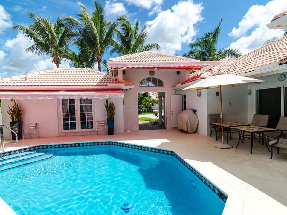 Amazing Brazilian Courtyard home has a separate guest house including a full bath both with sparking blue pool views. This is the one story model everyone wants which has soaring ceilngs; Tile floors, granite kitchen counter tops. 2nd bath with granite counter top. Brand new roof, just freshly painted interior and new carpets in bedrooms. This house is gorgeous. In one of the most desired communities in Boca Raton, great school district, wonderful clubhouse with community pool as well as your own private in ground pool within the courtyard area and additional backyard space.Feature large clubhouses complete with health & fitness centers, outdoor heated pools, spa,tennis courts,tot lots.*Some photos may be from different, but identical layout/model for showing purposes.