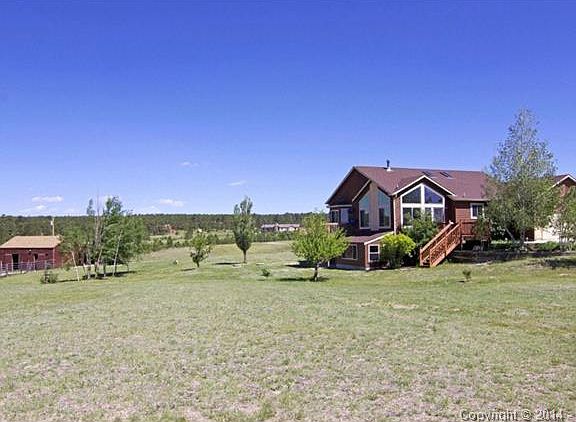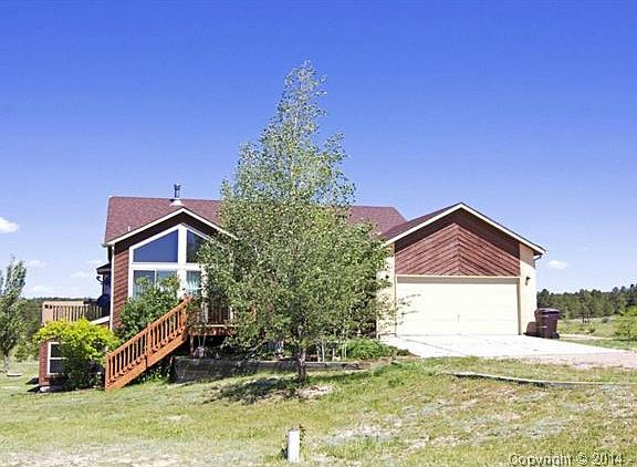 Charming horse property on 2.6 acres * Bright & open floor plan * Updated kitchen w/new counters, new cabinets, gas range, microwave, hardwood floors, skylights & pantry * Spacious mbed w/vaulted ceiling, c-fan, 3 closets, updated 4pc bath & walkout to deck w/Pikes Peak views * Living rm w/vaulted ceiling & wood stove * Finished walkout bsmnt w/family rm, 2 more bedrooms, 1 bath & sunroom w/hot tub * 2 stall barn & workshop w/corral * Newer vinyl windows * Newer water heater.
