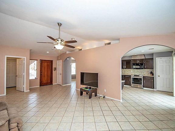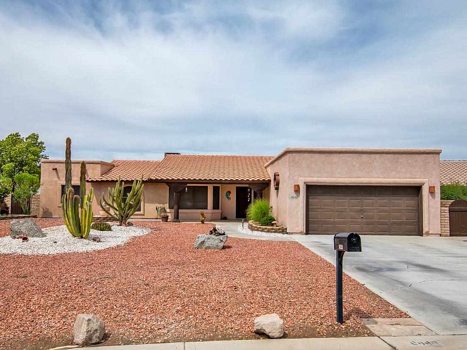 Outstanding updated Mesa Del Sol pool home with 3 Bedrooms, 2 full baths plus a large bonus room perfect for game, craft, office or an additional bedroom. Tile flooring throughout except in bedrooms, beautiful kitchen with Corian counters, SS appliances, built-in desk and tile backsplash. Sliding glass door opens onto the covered patio & sparkling heated pool and spa! Spacious Master Suite with walk-in closet, double vanity & separate shower and tub in Master bath. Easy care landscaping, A/C is 2 years old.