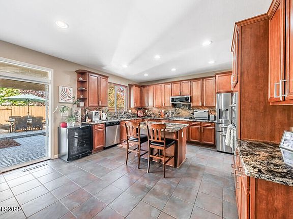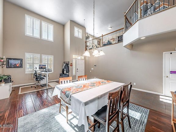 Welcome to 10841 Crooked Canyon Drive - a beautifully updated home that combines comfort, function, and family living in the heart of Damonte Ranch. This spacious 4-bedroom, 3-bath home offers 3,374 sq ft of living space with a warm neighborhood feel and access to scenic walking trails. The open-concept floor plan features a bright great room with vaulted ceilings, additional living room with cozy fireplace, and an inviting kitchen with a breakfast bar island, pantry, and plenty of storage - perfect for everyday living and entertaining. A main-floor bedroom, converted into a home gym with durable rubber flooring, provides adaptable space for evolving family needs. The primary suite includes two walk-in closets, wood floors, and a private balcony with peaceful mountain views. Two additional bedrooms with updated wood flooring and a shared bath offer plenty of space for kids, guests, or a home office, while the large bonus loft makes a perfect playroom, study area, or media space. Enjoy outdoor living year-round with a covered patio featuring a hot tub, side barbecue pad, and a beautiful open lawn ideal for family fun and relaxation. The three-car garage with epoxy floors provides abundant storage. Recent upgrades include new HVAC/AC for the main level, whole-home alarm, outdoor cameras, keyless entry, replaced plumbing and fixtures, new gas stove, hood, and microwave, and beautiful wood floors throughout the main level and primary bedroom. Walkable to the recently awarded J. Wood Elementary School as well as Damonte High School, this home offers exceptional value, convenience, and community. Schedule your private showing today and see why 10841 Crooked Canyon Drive is the perfect place to call home.