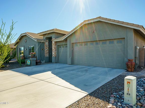Un Paralled House to call Home! Lots of tasteful extras above similar versions of the popular, open 2150 plan. CURB APPEAL Fasioncolor!. upgraded stack stone columns. Epoxy patio. Magnificant large EZ care light colored floor tile. Staggered kitchen cabinets. Four large windows replaced by Pella, All ten ft ceilings including garage, 4 window door to golf cart garage. Six solatube skylights. 7 fans. Master has BOTH tub & separate shower. Master expanded TEN FEET! Great libary/music/office/tv room. Dynamite back yard with Pergola.Exceptional built in BBQ to entertain a crowd! Pavers going left & right.Side gate/storage, south patio. MUST see! Gentle pet; keep doors closed during showing please.
