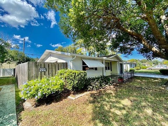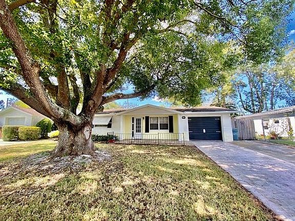 WELCOME TO YOUR REMARKABLE HOME at 10841 Premier Ave, Port Richey in the Palm Terrace Gardens Subdivision in sunny FL. This AMAZING home features 3 bedrooms, 2 bathrooms, 1 car garage in a NO FLOOD, NO HOA or NO CDD zone. Key exterior features are expansive double driveway, rain gutters, outdoor lighting, tropical landscaping with a MAJESTIC shade tree, hurricane storm shutters & fenced back yard with a BEAUTIFUL pergola. There is an additional shaded area on the right side of the home for you to enjoy while keeping energy costs down. Meet & greet your neighbors at the LOVELY covered front porch with mosaic tile floor, iron railing & outdoor carriage lights. As you step inside, you'll LOVE the CLASSIC TERRAZZO FLOORS which can easily be refinished for a VINTAGE MODERN STYLE. The galley kitchen features refurbished wood cabinets in a CRISP white color with satin nickel hardware & tile backsplash. There is a pass through window to the Florida room & a door leading to the garage from the kitchen. The OPEN FLOOR PLAN consists of the kitchen, dining, living & Florida (bonus) rooms. Access the screened & covered lanai from the FL room & onward to the backyard. The master bedroom features a ceiling fan, walk-in closet & private en suite bathroom. The master bathroom has a vanity with laminate counter & storage, toilet & step-in shower with glass door enclosure. In this AWESOME split bedroom plan, the remaining 2 bedrooms are located on another wing of the home & feature cedar wood closets. The guest bathroom has a vanity with storage, toilet & tub/shower combo with grip handles for safety. In the oversized garage, you'll find the washer/dryer (included), attic access, built-in shelving for workshop purposes & a side door entrance. Location is IDEAL near schools, beaches, medical plazas, shopping centers, restaurants, places of worship, airport & tourist attractions. MAKE THIS YOUR FUTURE HOME!