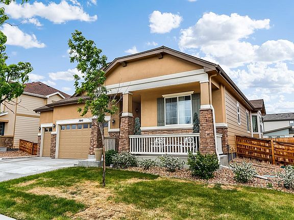 Stylish 4 bed /3 bath ranch home in the heart of desirable Reunion, near Reunion Park and Rec Center! Open contemporary layout concept featuring entry hall, 9'+ ft cathedral ceilings and sleek engineered wood plank flooring. Beautiful Gourmet Kitchen featuring eat-in center island, all SS appliances, granite slab and walk-in pantry. The luminous main level is surrounded by large windows including bay windows in Master Room and elegant Study. Master Retreat with walk-in closet and 4-piece en-suite bathroom. Entertainer's exteriors with covered porch, hot tub, sunbathing patio and xeriscape landscaping for easy maintenance and low water usage. Finished basement where everyone will enjoy hours of fun. Incredibly spacious Rec/Family Room with multiple gathering areas, recessed lighting and bonus storage space. Completed by private Guest Bedroom with walk-in closet and ¾ tiled Bath. Close to schools, markets and eateries. Quick access to E-470, Buffalo Run Golf Course and 104th Ave!