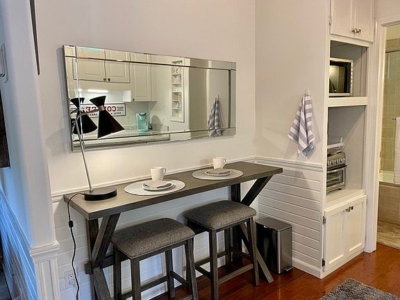 This cottage is located on 2 gorgeous acres just a mile from town. It is removed from the main dwelling for privacy and has its own internet service for connectivity and stability! A well designed fully equipped kitchen and nicely appointed bathroom with a step-in shower add to the overly large bedroom with room for a desk for those office days. The add on of a screened in porch enhance the outside dining experience and relaxation around the fire pit! Walk to town and enjoy the meandering meadows and beauty of this most desirable area. There is a flat fee of $200 for utilities. This includes power, gas, waste pickup, internet, plus Prime and Netflix streaming. No smoking of any type is permitted in or on the premises or the 2 acres. This is a month-to-month rental situation. There is one queen-size bed. No subletting or extra renters can be added to share the rent. Ample off-street parking is available.