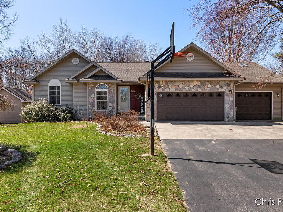 Spacious 4 bedroom, 3 full bath ranch with frontage on Wildwood Pond. Great location close to shopping, schools & easy access to Grand Rapids. This home is ready to occupy! All freshly painted, new flooring, all appliances & window treatments and an established yard are all waiting for a new owner. The main floor features a nice kitchen with dining area, living room with gas fireplace, a bonus family room with loft area, owners suite with full bath & walk-in closet, 2 additional bedrooms & full bath. The lower walkout level features a nice family room with a wet bar, sauna room, full bathroom, and the 4th bedroom. Sellers had a home inspection done, & are offering a home warranty. Plus they just keep improving the house, recently replaced the pump, pressure tank & switch on the well