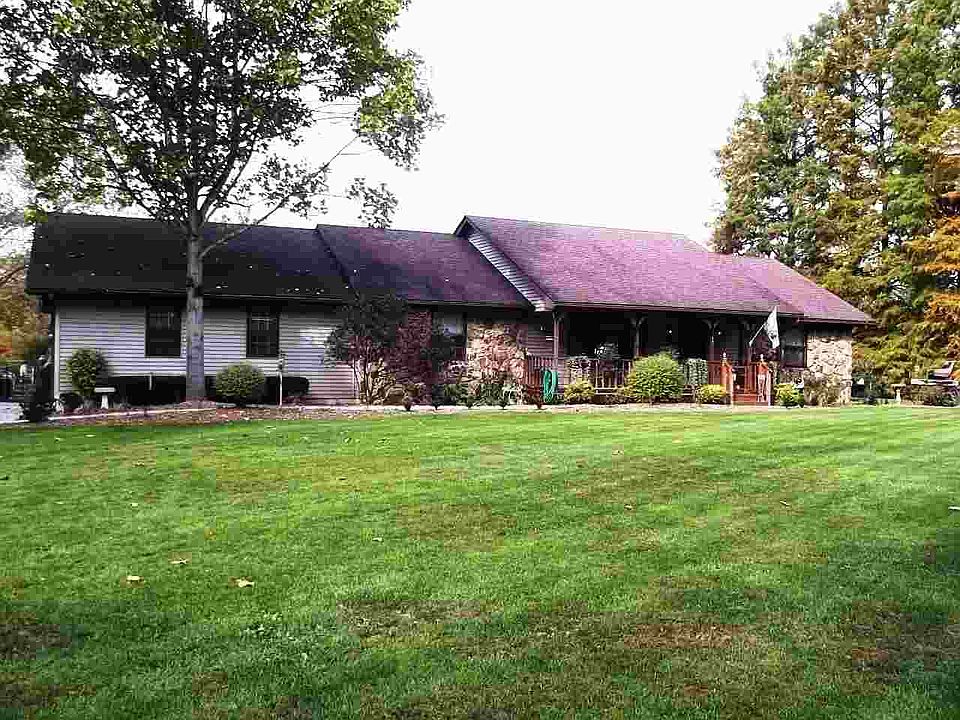 Looking for breathtaking views? You have found the perfect 2 to 3 bedroom country home on .77 acre lot surrounded by serene beauty. Relax on the covered cedar front porch & admire the new landscaping. Step inside and you will fall in love with the bright open floor plan with heavy duty Pella sliding door, Pella windows, high vaulted ceiling, built in plant shelves and a back up cast iron wood burner that sits atop a brick surround w/ decorative tile at the base and will heat the entire upstairs for backup if needed. Chefs, you will enjoy the newly remodeled galley kitchen fully applianced with nice cabinets and new countertops and nice pantry. The master BR is lovely with a claw foot tub surrounded with a tile backsplash, tile flooring w/ decorative glass door and nice storage. Need more room, check out the huge finished basement with tons of storage and separate furnace, and supply room with Kessco Water softener, filter and osmosis. Check out the renovations list on file! Step out back onto the nice sized cedar deck. This home is priced to sell, Call Sherry Bedwell @ 812-236-9087 and Remember Sherry Sells!