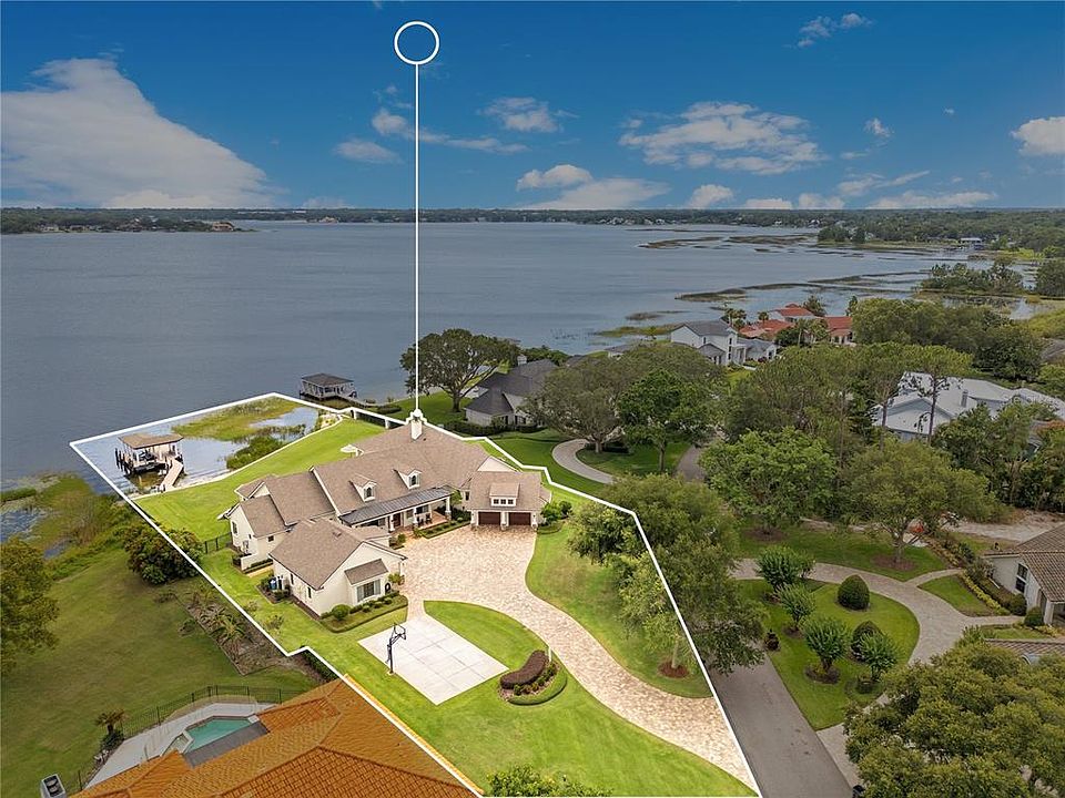 Over 150 feet on Lake Down provides panoramic views of what is arguably the cleanest of the Pristine Butler Chain of Lakes with a white sand beach and crystal clear water it will be like having your own resort in the backyard..Bayshore Drive is a rare and exclusive peninsula with grand oaks lining the paved road providing that “Old Florida” feel - plenty of shade for the perfect place to exercise and enjoy a walk or bike ride..Positioned on the North side of Windermere traffic is light making it easy to get to the Turnpike, 408 or the 429 saving you precious time for trips to the Airport or commutes into Downtown Orlando..This 2013 Parade of Homes Favorite “The Nantucket” is the perfect floorplan for anyone looking for a 1 story open floorplan having 4 full Suites-Separate Office with paneled walls and built in cabinetry, expansive Kitchen, Massive Pantry and Dining Room with 2 separate interior entertaining areas and a huge exterior covered screened porch overlooking the lake and pool that includes a TV, fireplace and BBQ system that will make the Grill Master smile..The home is designed to allow natural light to pour in without the direct heat from the sun..The Primary Suite truly feels like a resort spa with a soaking tub having a corner view of the lake, 2 large walk in closets, Spacious Shower with multiple heads, 2 Vanities with custom designed mirrors, the Bedroom has a nearly 180 degree unobstructed view of the lake with the most dramatic sunrises that will inspire and stir your soul..The attention to detail from the Reclaimed Brick on the front porch, Stacked Stone on the paneled columns, Herringbone Hand Scraped Oak Entry flooring, Tongue & Groove Ceilings, Tray Ceilings and Crown Moulding, 24 ft wide & 10 ft tall Pocket Glass Doors & 10 ft tall Corner Glass Sliding Pocket Doors open to the nearly 1,200 Sq Ft Covered Porch, Hand Hewn Beams in Family & Game Rooms, The Expert Carpentry Craftsman that installed the wall paneling and created the custom built shelving for closets and entertainment centers, Niches properly placed throughout to maximize the storage and open hallways, The timeless Kitchen is designed for the Gourmet Chef that likes to entertain having a large island with prep sink and plenty of seating for friends, Farmhouse Sink overlooking the lake, Stainless Wolf 6 Burner Natural Gas Cooktop with a custom Range Hood, Stainless Wolf Double Oven & Microwave, Stainless Sub-Zero Freezer/Fridge that backs up to the Massive Pantry and a 2nd Office, large Laundry area and Mudroom that has direct access to the Garage, Retractable Porch Screens with the tracks hidden inside the columns & ceiling, Even the Boathouse has upgraded Decking, Paneled Columns, Tongue & Groove Ceiling with Crown Moulding & Recessed Lighting..The backyard is large enough to have a football or soccer game with the kids or get competitive in the front yard on the Basketball or Pickle Ball Court..The positioning of the home offers incredible privacy without any of the Neighbors homes having a view of the pool area or Summer Kitchen..The “Car Guy” will love 4 separate garages with plenty of room for 4 Cars/Trucks & additional space for a workshop..The Town of Windermere is a charming and quaint community offering seasonal events & Food Trucks, Friday Farmer’s Markets, and soon to have an Italian Restaurant, Wine Club and Ice Cream Parlor joining the existing Café and Brewery making the “downtown” even more inviting..Must See this unique home