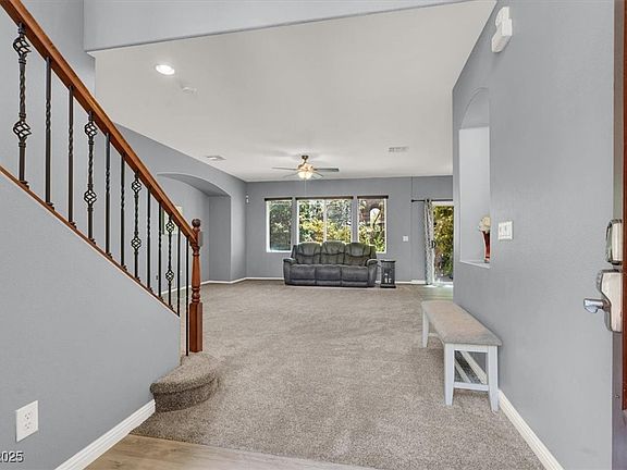 HIGHLY UPGRADED HOME LOCATED IN THE MASTER PLANNED COMMUNITY OF PROVIDENCE. NESTLED WITHIN A GATED COMMUNITY, THIS HOME HAS EASY ACCESS TO SCHOOLS, SHOPPING, FREEWAYS, AND A SHORT DISTANCE TO KNICKERBOCKER PARK AND SOME OF SOUTHERN NEVADA'S BEST HIKING, BIKING, AND JOGGING TRAILS. NESTLED IN A CUL DE SAC THIS CORNER LOT HAS GREAT CURB APPEAL WITH COURTYARD AND AN OPEN FLOORPLAN. CUSTOM PAINT AND FLOORING THROUGHOUT. OVERSIZED FAMILY ROOM WITH CUT OUT MEDIA NICHE, CHEF'S DREAM GOURMET KITCHEN WITH STAINLESS APPLIANCES, LEVEL 3 QUARTZ COUNTERTOPS, CUSTOM BACKSPLASH W/ MULTI LED LIGHTING AND REVERSE OSMOSIS, RAISED PANEL MAPLE CABINETS AND OVERSIZED ISLAND PERFECT FOR ENTERTAINING FAMILY AND FRIENDS. LARGE PRIMARY BEDROOM WITH WALK-IN CLOSETS AND SPA LIKE BATH FEATURING NEW SHOWER INSTALL! 2 ADDITIONAL BEDROOMS WITH JACK AND JILL BATH AND AN ENCLOSED LOFT AREA PERFECT FOR THAT EXTRA BEDROOM, OFFICE, "AT HOME" GYM OR SECOND FAMILY ROOM. PRIVATE REAR YARD WITH MATURE LANDSCAPING