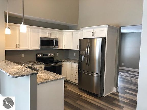 New Construction! 2BR+2BA+loft Condo located on the M22 Corridor within walking distance to several restaurants, beach & park, Tart Trail, and marina w/ public boat launch. Beautifully finished out with fireplace, pantry, granite tops, laundry & mud room combo, covered front and back porches, all appliances (incl. washer & dryer) included! City water & sewer. One car attached garage is extra deep and dedicated 100+ square foot storage room. Association takes care of all landscape maintenance and snow removal! Short term rentals allowed. Elmwood Township taxes.