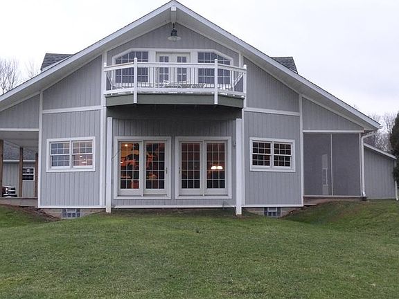 Beautiful modern home on 11 acres. Open floor plan, vaulted ceilings, lots of natural light. Fabulous large kitchen with Hickory easy close cabinets, all appliances included. Awesome screened in porch off dining/living room area. 4 Bedrooms, 1 on first floor, 2.5 bath. Office or possible 5th bedroom also on first floor. 2nd floor has open area balcony overlooking living room, leading out onto an awesome deck overlooking the scenic property. One garage is 46 x 40 with heat and 1/2 bath, 2nd garage is 28 x 26 with a 30 x 24 room connecting the 2. GREAT FOR ANY TYPE WORK SHOP! MUST SEE ALL THE POSSIBILITIES THIS PROPERTY HAS TO OFFER. PROPERTY RECENTLY CONNECTED TO PUBLIC WATER!