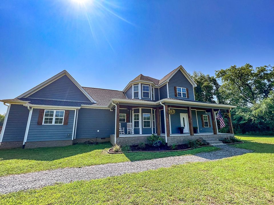 Snuggled perfectly in the country of Rutherford County is your Entertainer's Dream oasis! Gorgeous new front door welcomes you into the perfect setting for every type of gathering! Your open layout floor plan offers soaring ceilings with a cozy ambience. Wait until you see your kitchen!! It features stunning honed granite, copper farm sink, tons of cabinet space, pantry w/barn doors, floating shelves, 1 year old refrigerator & stove/oven. The primary bedroom is downstairs, spacious and tranquil featuring trey ceiling w/whitewashed wood.The primary bath has a huge walk-in shower w/2 shower heads, free standing clawfoot bathtub, 2 separate vanities & large walk-in closet. There is a small office downstairs conveniently located near the primary bed; could be a great nursery too! No carpet in this home - great for country living! The party continues outside on the front & back porches which total over 1,000 sq ft! No HOA! Be ready to explore all that gorgeous Tennessee has to offer!