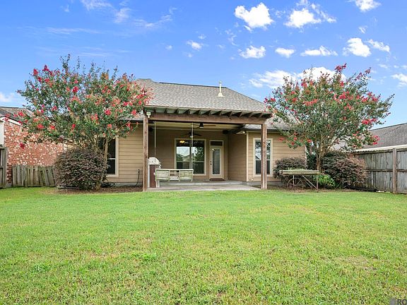 Just what you have been waiting for! This Lakefront 3 bed/2 bath home with Outdoor Kitchen offers the perfect blend of comfort, style, & location. Walking in, you’ll be greeted with high ceilings & an open concept/split floor plan filled with natural light. The kitchen includes a breakfast bar, desk area, abundant counter & cabinet space & stainless refrigerator. The living room showcases large windows overlooking the outdoor kitchen, yard, & stocked pond, wood floors, & a cozy gas fireplace. Retreat to the primary suite featuring new carpet, a large ensuite with jetted tub, separate walk-in shower, dual vanities, & an oversized walk-in closet. Two spacious additional bedrooms with nice sized closets are on a separate wing. One bedroom features wood floors, the other new carpet. Outside, enjoy your private fully fenced backyard oasis complete with an outdoor kitchen, yard & views of the pond. Additional amenities stainless appliances, garage with built-in workbench & shelves plus separate storage room & concrete pad on one side of the house. The neighborhood also offers fantastic amenities including a community pool and park. Conveniently located in highly sought-after Springlake at Bluebonnet Highlands, just minutes from shopping and LSU.