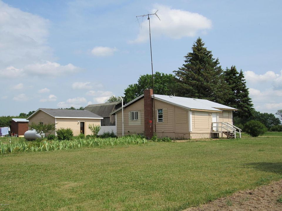 Newly renovated home that sits on 2.5 acres in a country setting. This 3 bedroom 1 1/2 bath home has been remodeled with R-13 insulation, New steel roof, Windows, Drywall, Laminate Flooring, Well and furnace. Many other updates include electrical,plumbing and new hot water heater. This home is move in ready and comes with a large hip roof barn and 24x24 detached garage with two garage doors. Fruit trees were planted such as apple, peach and cherry. There is also 3 types of raspberry bushes, blueberry bushes, horseradish and so much more. The kitchen is open with many cupboards and counter space. The full basement is partially finished with a bar and child's play area. Set up your showing today!
