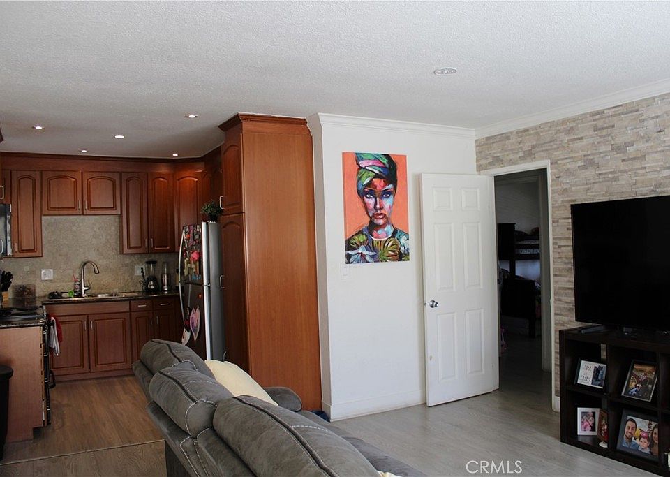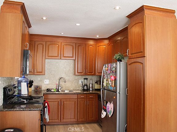 Gorgeous Turn Key single story property in a great neighborhood and just a few minutes to the 5 freeway. 2 bedroom with a master bedroom balcony. Remodeled around 2 years ago with beautiful laminate flooring, interior paint, upgraded kitchen with stone accents, refrigerator, microwave, dishwasher, freestanding stove with an oven, accent stone wall in the living room, new lighting and fixtures, new kitchen sink, kitchen cabinets, bathroom was redone as well all about 2 years ago. Well kept upstairs unit with view to the neighborhood from the master bedroom balcony. Very private and a cozy feel. Private downstairs gated parking garage with your own private spot. Just a few minutes drive to the beach for those wonderful summer days and nights. A must see for any buyer or investor!!!