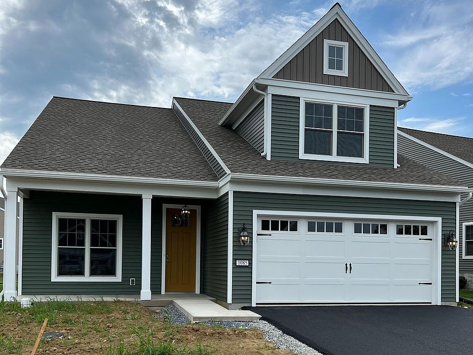 The SHERMAN A with LOFT in Alden Place. This refined home with 2 Car Garage brings charm and functionality together in harmony. This beautiful modern cottage comfortably accommodates 3 bedrooms and 2.5 bathrooms, providing ample space for hobbies as well as guests. You will love the spacious kitchen with pantry and the sizable master suite. Sherman provides the house to make a Home Sweet Home. Alden Place is a 55+ Active Adult Community featuring a 17,000 sq. ft. Clubhouse with an indoor pool, hot tub, fitness center, ballroom, library, billiard room, and coffee cafe. Also, the community has a small fishing lake and access to Rails & Trails for walking and biking.