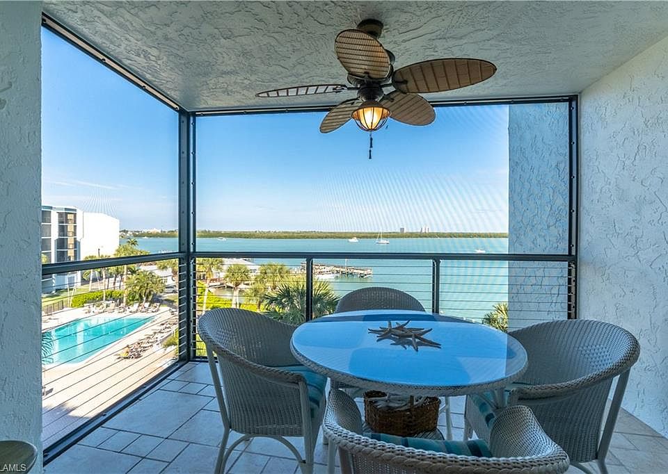 MOTIVATED SELLER---- BRING ALL OFFERS ---MILLION DOLLAR VIEW - RIVERSIDE CLUB ALLOWS DAILY RENTALS- ALL INVESTORS ARE WELCOMED ! Best View in all of Riverside Club-5TH Floor .Remoldeled Stunning 1 Bedroom, 1 Bath Condo with Gorgeous Water Views in Riverside Club – Marco Island This Beautiful Impecable well maintained Condo Tranquility as the Location Setting for Coffee or Cocktails on the Lanai. For Beach lovers it's 7 Minutes to Marco Island Beach. Welcome to 1085 Bald Eagle Dr. #E505, a beautifully updated 1-bedroom, 1-bath condo located on the 5th floor of Riverside Club, offering 800 square feet of stylish living space. This condo provides breathtaking views of the Marco Island River minutes from the Gulf of Mexico from the private balcony, creating a serene and picturesque setting for your everyday retreat. The condo has been meticulously maintained and updated throughout the years. The spacious eat-in kitchen boasts quartz countertops, solid wood cabinets, and a deep farmhouse-style sink, making meal prep a pleasure. The kitchen also includes a top-of-the-line Bosch dishwasher and new tile flooring that flows seamlessly throughout the home. Enjoy the comfort and elegance of crown molding throughout the unit, adding a sophisticated touch to the living and dining areas. The bedroom and bathroom are enhanced with custom plantation shutters, and the updated bath features a modern glass shower door. The Couch in The Livingroom is a Queen Blow-up Air Mattress very comfortable extra space for more company to stay. There is no washer and dryer Hook-up in this unit-However it can be added --Contractor and permit needed ( There is a washer and dryer down the hall on the same floor also ). Other notable features include a new AC unit, installed in 2024 Sellers are offering a 1 year warranty on the A/c until Nov. 2025. New Hot Water Heater-2025 The condo unit is also equipped with impact glass windows and sliding door throughout for added peace of mind. The newly screened balcony is the perfect spot to relax and enjoy the fresh salt air and take in the island feel. Riverside Club offers fantastic amenities and is ideally located close to the best dining, shopping, and beaches Marco Island has to offer. With boat dock leases for $ 400.00 plus 2% Sales Tax a Year you get out to the Gulf of Mexico in minutes from this amazing dock location. (Must inquire with the Office ). The maintenance fees include everything from cable, water, internet , electric, 2 pools, tennis, pickleball, clubhouse, boat launch, marina, bait shop, library all amenities and one payment every quarter to cover these expenses. Investors and owners alike will enjoy the rental flexibility- with 1 Day Rentals allowed for the most flexible short term rental options of any Condo on Marco Island. Don’t miss out on this incredible opportunity to own a piece of paradise, with some of the greatest million dollar views available on Marco Island.