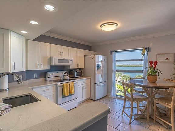 Private balconyDeep farmhouse-style sinkNewly screened balconyQuartz countertopsSpacious eat-in kitchenSolid wood cabinetsGorgeous water views