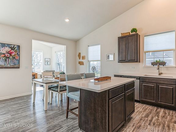 Welcome to your new home where comfort, convenience, and community come together in perfect harmony! Nestled within Andare at Woodlore Estates, a 55+ Active Adult Community, this charming 3 bedroom, 2 bath Ranch home invites you to experience a life of ease and relaxation. As you step inside, you'll be greeted by a neutral and inviting color palette that sets a warm tone throughout. The living room, with its vaulted ceilings, seamlessly connects to the kitchen and dining area, creating a perfect space for gatherings with loved ones. One of the highlights of this home is the sunroom, a tranquil oasis with windows on three sides that overlooks a serene premium wooded lot with mature trees. Kitchen is a chef's dream, featuring Aristocrat cabinetry, quartz countertops, a large island, pantry, and GE Profile stainless steel appliances. Primary suite offers a retreat-like feel with its walk-in closet and full bath, complete with quartz counters. Additional features include a laundry room and two more bedrooms, one of which could be used as a craft room or office/study, offering flexibility to suit your lifestyle. Quality craftsmanship is evident throughout, with modern amenities like a Wi-Fi Honeywell thermostat, Ring doorbell, Wi-Fi in every room, Schlage locks, and a 4' garage extension adding convenience and security. If you're ready to downsize and embrace maintenance-free living, look no further. The Andare Clubhouse is your gateway to a vibrant community, offering a fitness center, meeting room, gorgeous great room, outdoor patio with a fire pit, walking paths, bocce ball, pickleball courts, and a picnic pavilion. Plus, with included lawn care and snow removal services, you can truly savor every moment of your maintenance-free lifestyle. Enjoy this home's convenient location off Route 31 just North of Route 176 puts dining, shopping, healthcare facilities, the Metra Train Station, and the Crystal Lake Park District within easy reach. Don't miss out on the opportunity to experience the best in 55+ living. Contact me today for a private tour and start envisioning the life you deserve!