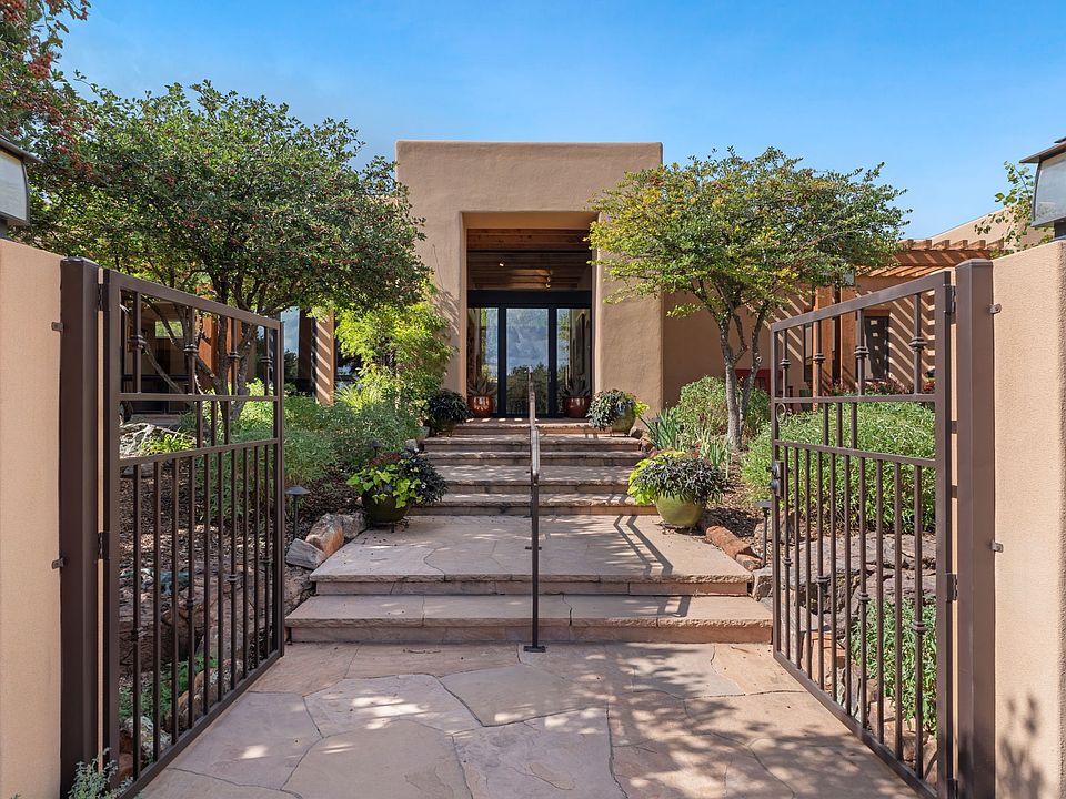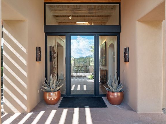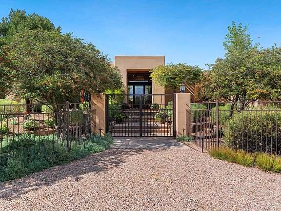 Tucked just a mile from the historic Santa Fe Plaza, this exceptional adobe estate blends classic Northern New Mexico architecture with modern sophistication. Set on a wooded, private property, it features a 3,263 sq. ft. main house and a 1,340 sq. ft. detached casita—ideal for guests or extended family.