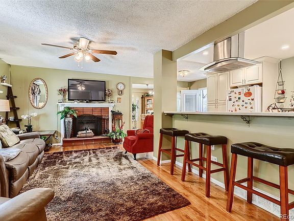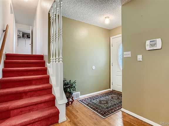 Come look at this 3 bed 2 bath Trilevel with 2 car garage and 2 extra parking spaces in driveway. The main floor features a brand new kitchen with tons of soft close cabinets, huge pantry, granite countertops, breakfast bar and all appliances included. Hardwood floors, large Livingroom with fireplace and dining room. Access the 300 sq ft sunroom and back yard for those bbq's. Upstairs features master bedroom with large closet and private balcony to enjoy morning coffee and view of mountains. 2 more bedrooms and a full updated bath. Hardwood floors underneath carpet in hall way and bedroom. Lower level features another updated bath, laundry room washer dryer included and very large family room with walkout access. Easily can add another bedroom. New furnace in Jan 2022. Newer roof, gutters, siding & windows. Solar panels for energy efficiency. 2 ac units included. Close to schools. Conveniently located with easy access to DIA only 20 mins away, I-225, light rail, Anschutz Medical Campus, the VA, University & Children's hospital 5 min away. Close to Buckley Air Force base as well. Come look today!