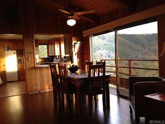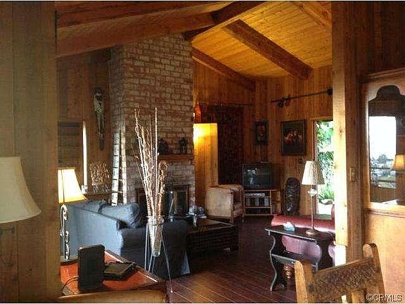 Single story home with Amazing Views! Canyon, ocean views of both Catalina and San Clemente islands that capture some amazing sunsets.This home has a cabin style feeling, open beam ceilings, brick fireplace, cedar paneling, built in cabinetry. *Second Bedroom currently being used as a den. A deck space along the back of the home, two car garage with direct access. Fenced yard with a grassy area and lush tropical landscaping. Extra large master sutie, bath has dual sinks, bathtub, a seperate shower area. In addition this home has approved plans to build a 3,400+ sq ft home.
